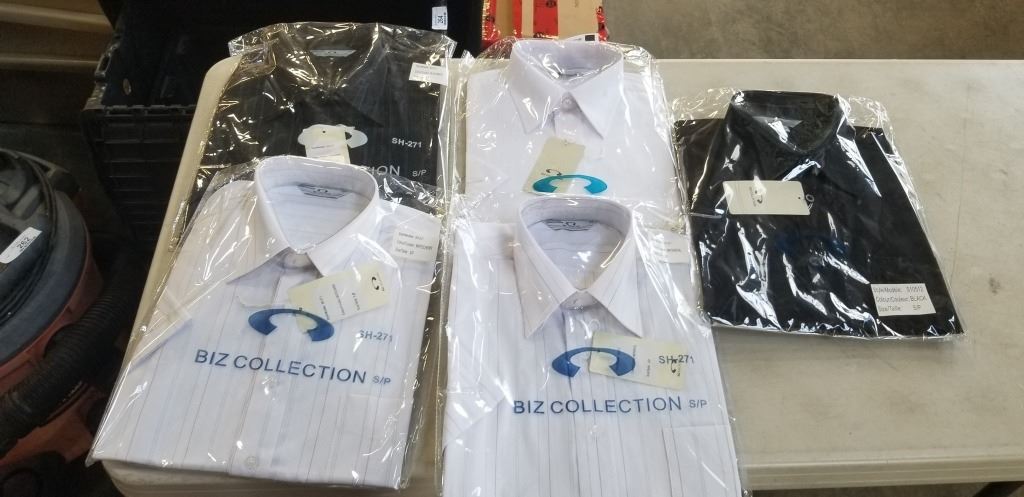 5 NEW BIZ COLLECTION SIZE SMALL DRESS SHIRTS, ASSORTED COLOR