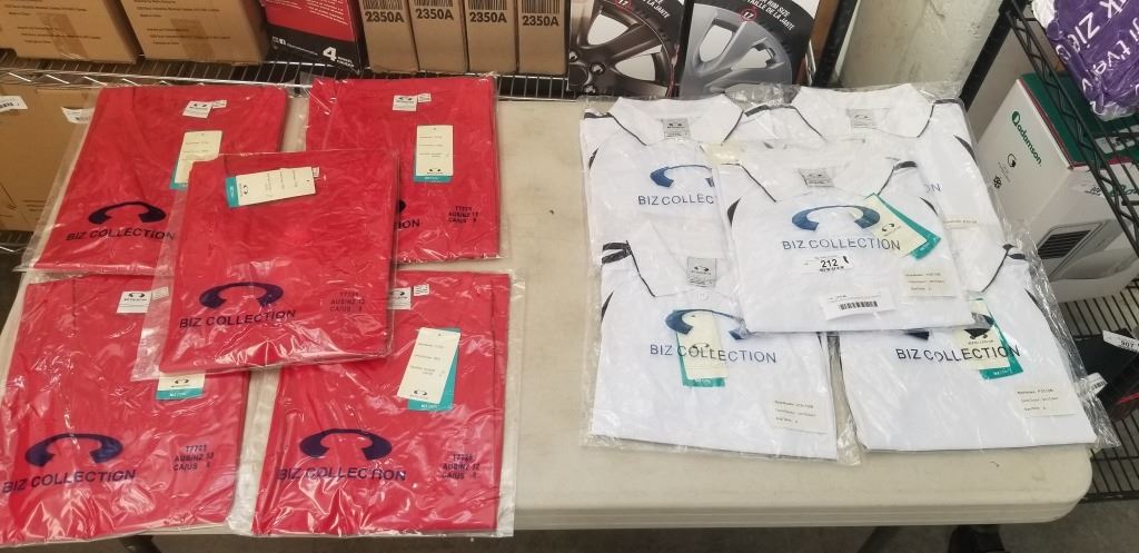 5 NEW LADIES SIZE 8 WHITE GOLF SHIRTS AND 5 NEW RED ATHLETIC SHIRTS SIZE 8