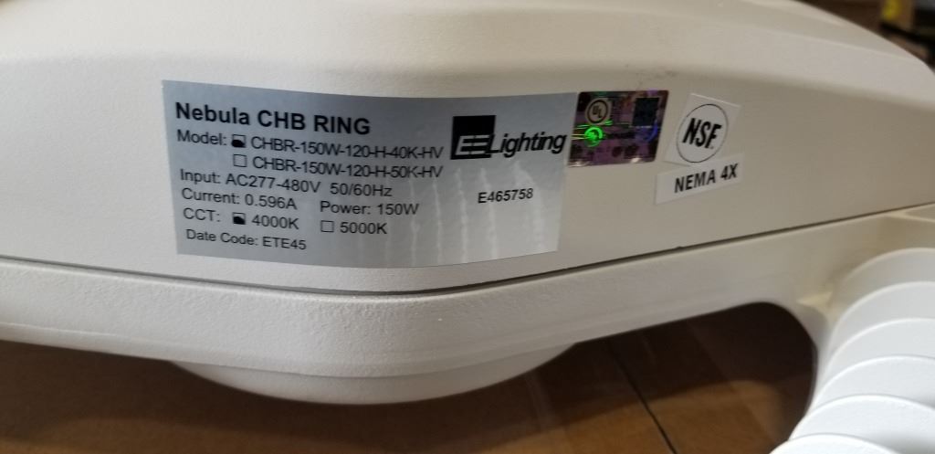 5 NEW LED EE ELECTRIC NEBULA HIGH BAY RING LIGHTS, 40K HIGH EFFICIENCY, SUITABLE FOR WET LOCATIONS