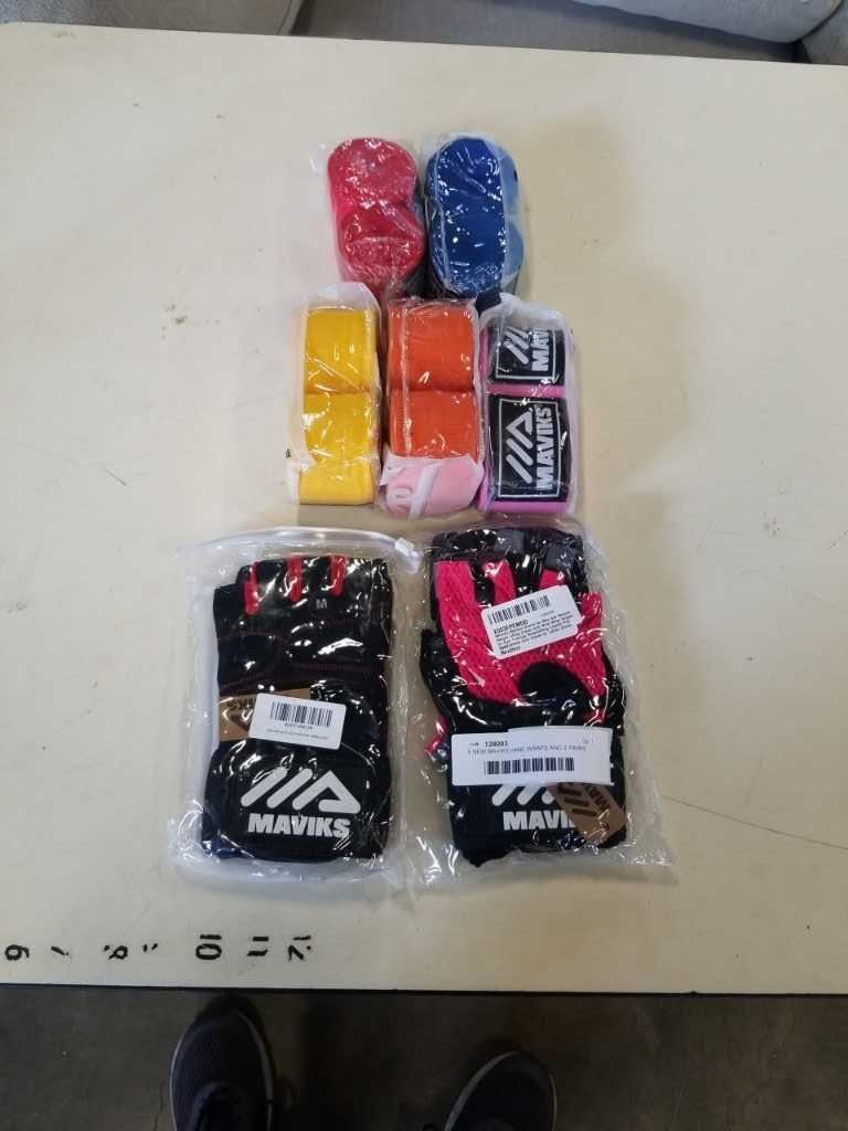 5 NEW MAVIKS HAND WRAPS AND 2 PAIRS WORK OUT GLOVES