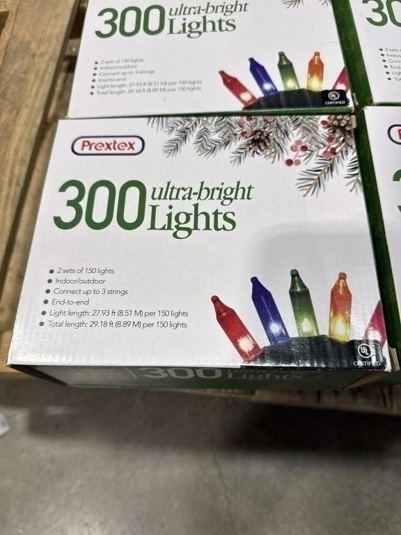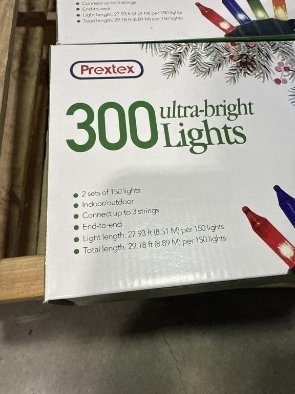 5 NEW PREXTEX 300 ULTRA BRIGHT LIGHTS CHRISTMAS LIGHT STRANDS, EACH BOX HAS 2 SETS OF 29FT STRANDS,