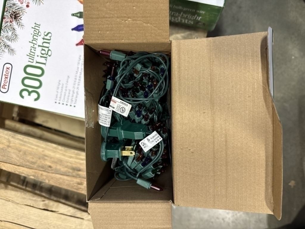 5 NEW PREXTEX 300 ULTRA BRIGHT LIGHTS CHRISTMAS LIGHT STRANDS, EACH BOX HAS 2 SETS OF 29FT STRANDS, TOTAL 10 150 LIGHT 29.18FT STRANDS, MULTI BULB, GREEN WIRE
