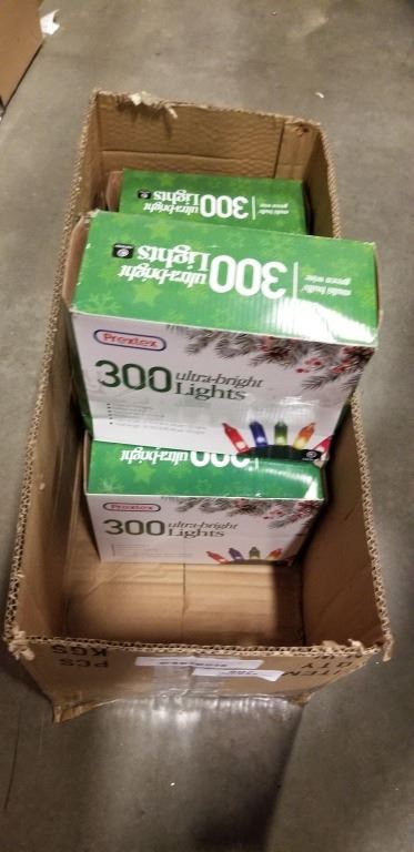 5 NEW PREXTEX 300 ULTRA BRIGHT LIGHTS CHRISTMAS LIGHT STRANDS, EACH BOX HAS 2 SETS OF 29FT STRANDS,