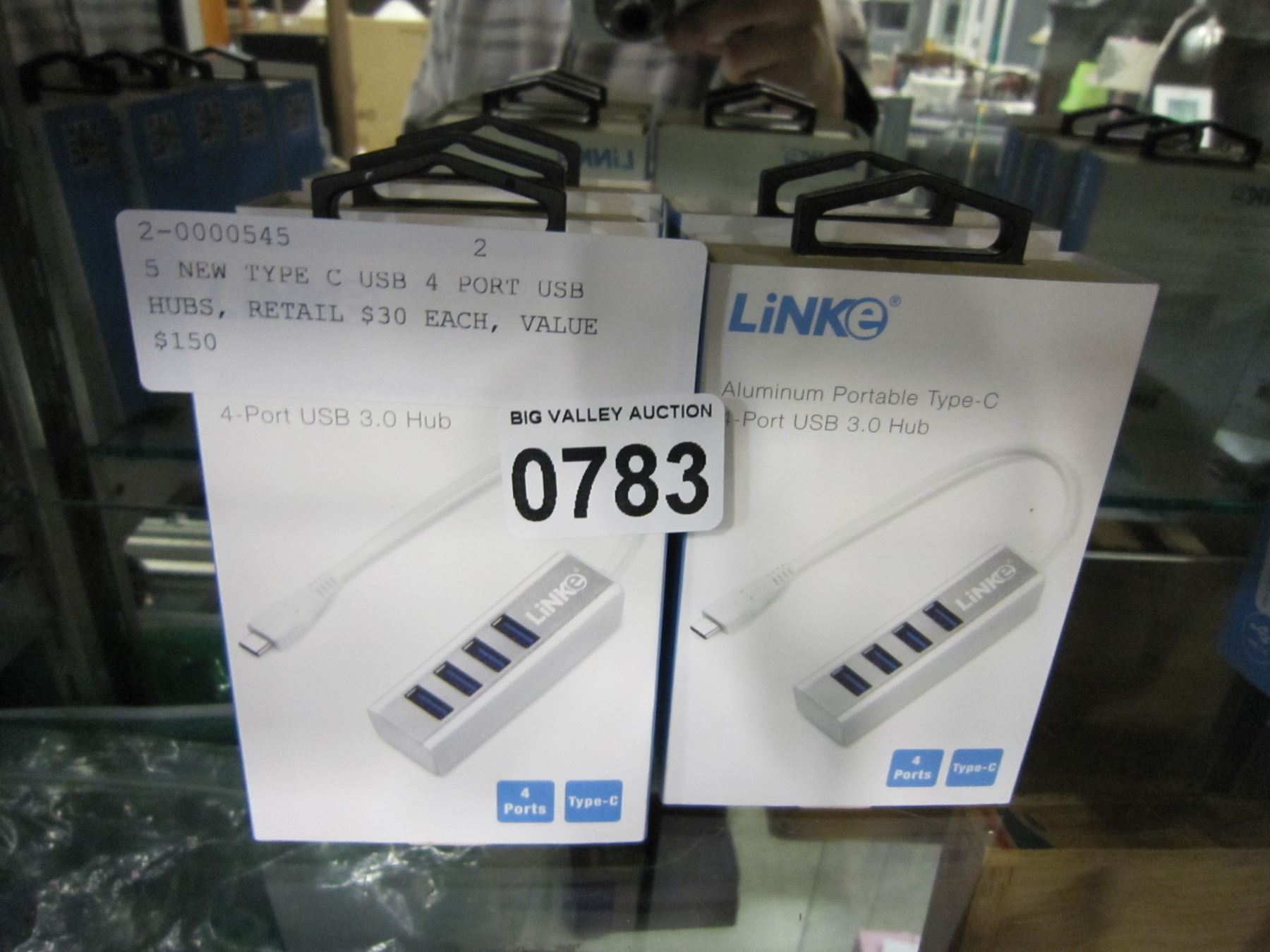 5 NEW TYPE C USB 4 PORT USB HUBS, RETAIL $30 EACH, VALUE $150