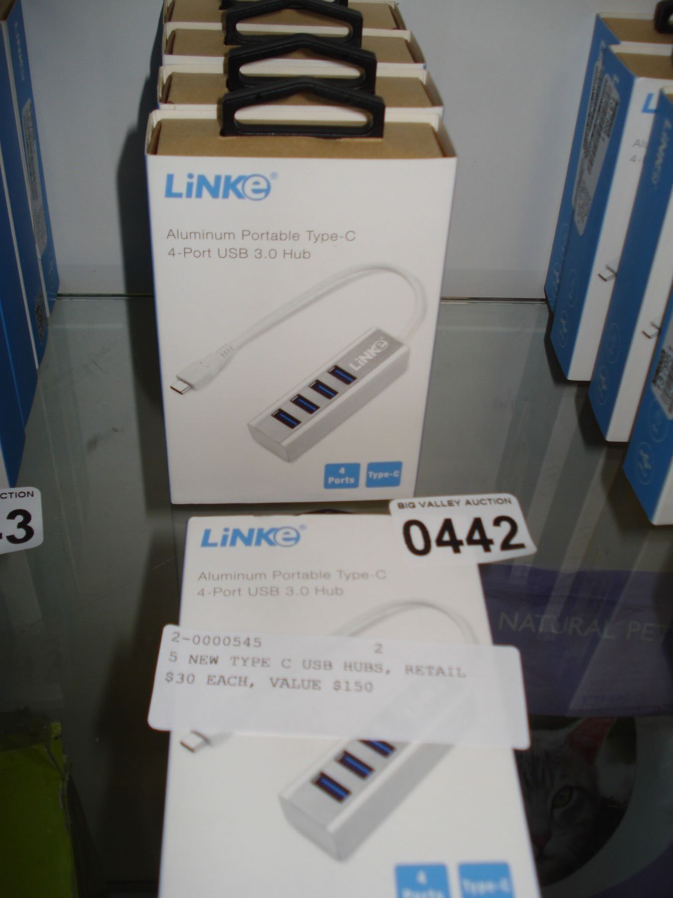 5 NEW TYPE C USB HUBS, RETAIL $30 EACH, VALUE $150