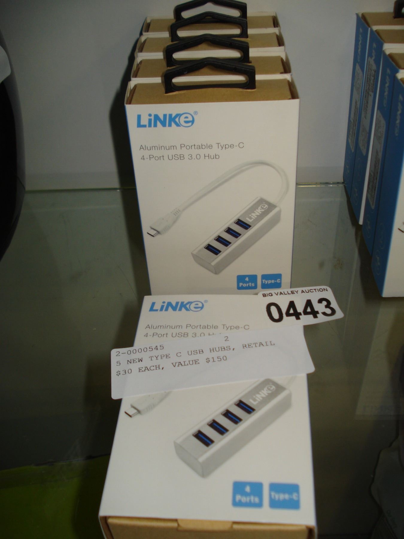 5 NEW TYPE C USB HUBS, RETAIL $30 EACH, VALUE $150