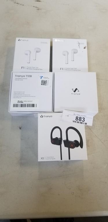 5 PAIRS OF TRANYA WIRELESS HEADPHONES, 2 T10B, 2 F1, AND X2