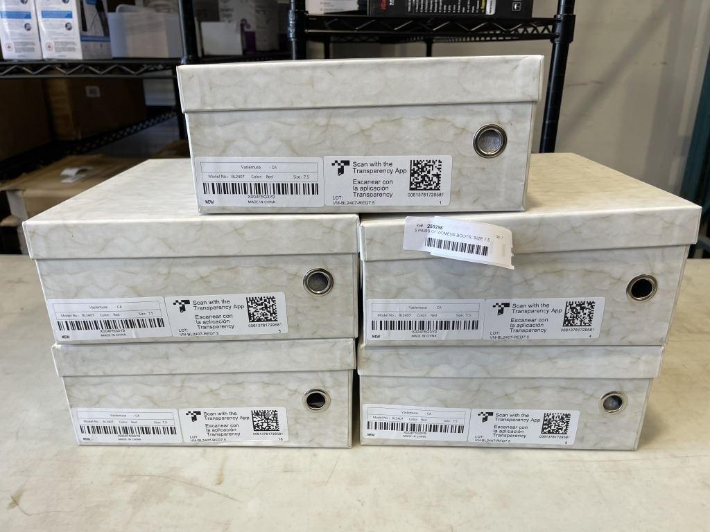 5 PAIRS OF WOMENS BOOTS, SIZE 7.5
