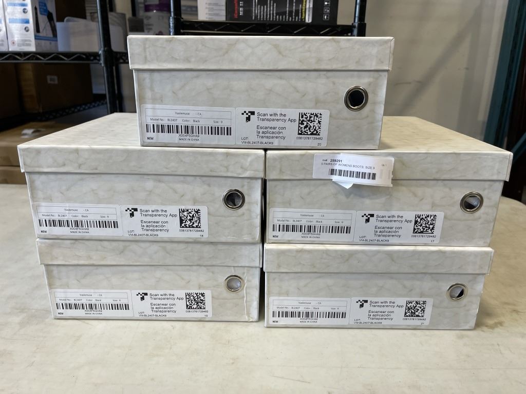 5 PAIRS OF WOMENS BOOTS, SIZE 9