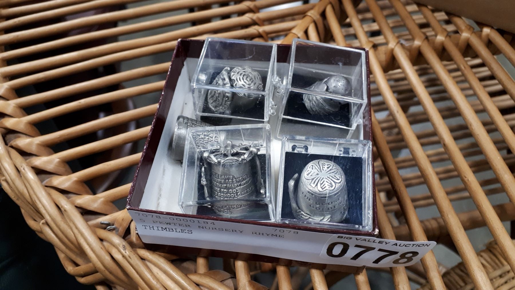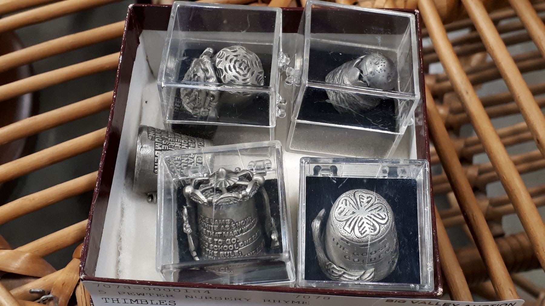 5 PEWTER NURSERY RHYME THIMBLES