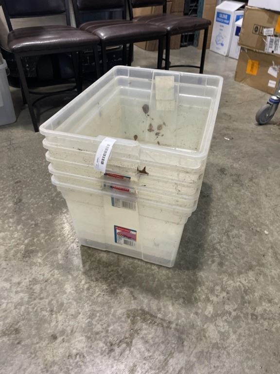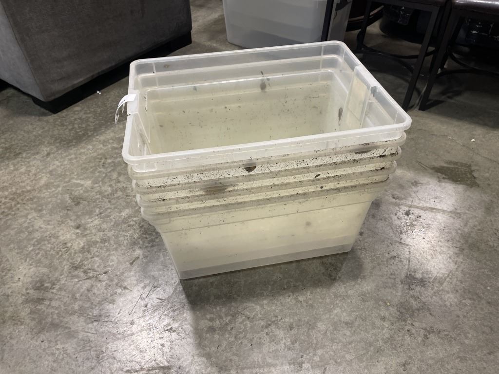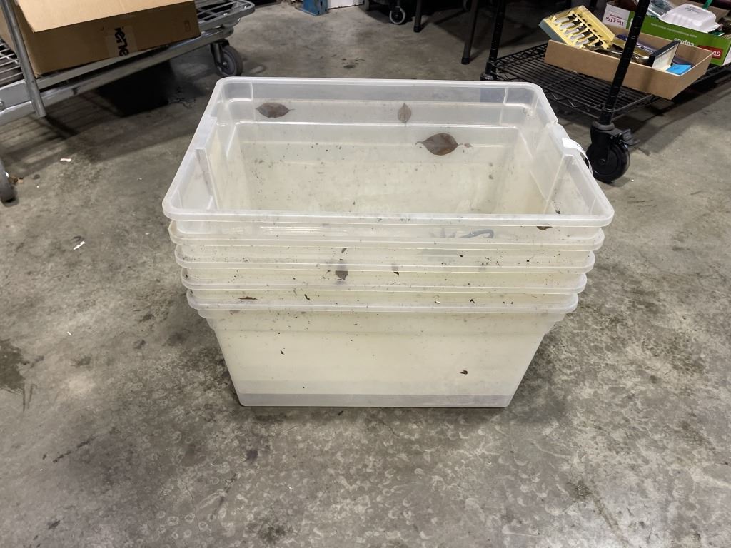 5 PLASTIC STORAGE TOTES