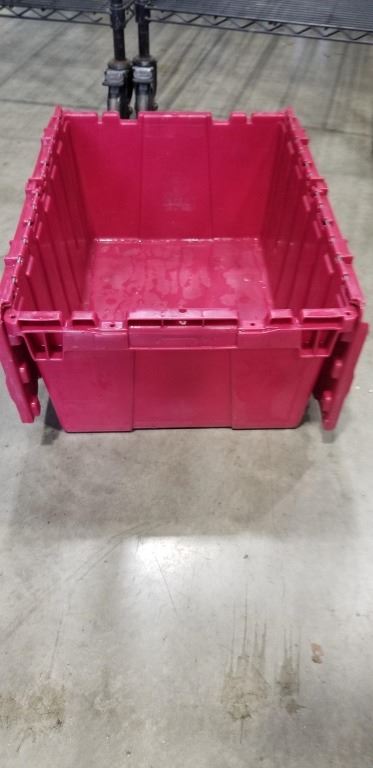 5 PLASTIC TOTES W/ BUILT IN LIDS