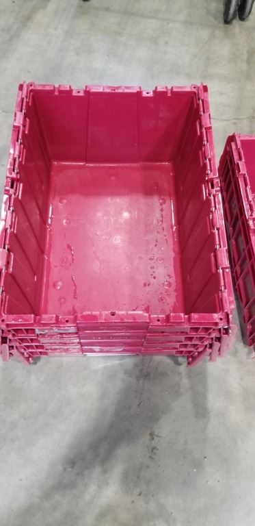 5 PLASTIC TOTES W/ BUILT IN LIDS