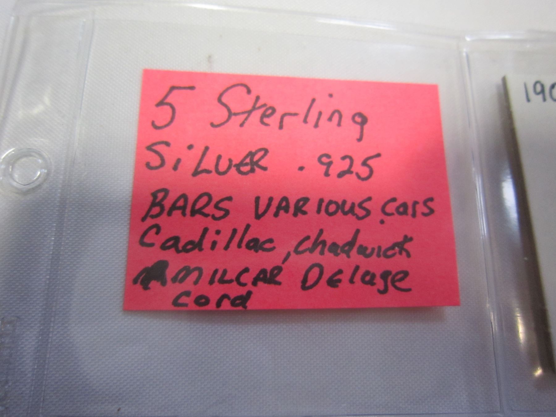 5 STERLING SILVER .925 BARS VARIOUS CARS CADILLAC, CHADWICK, AMILCAR, DELAGE, CORD
