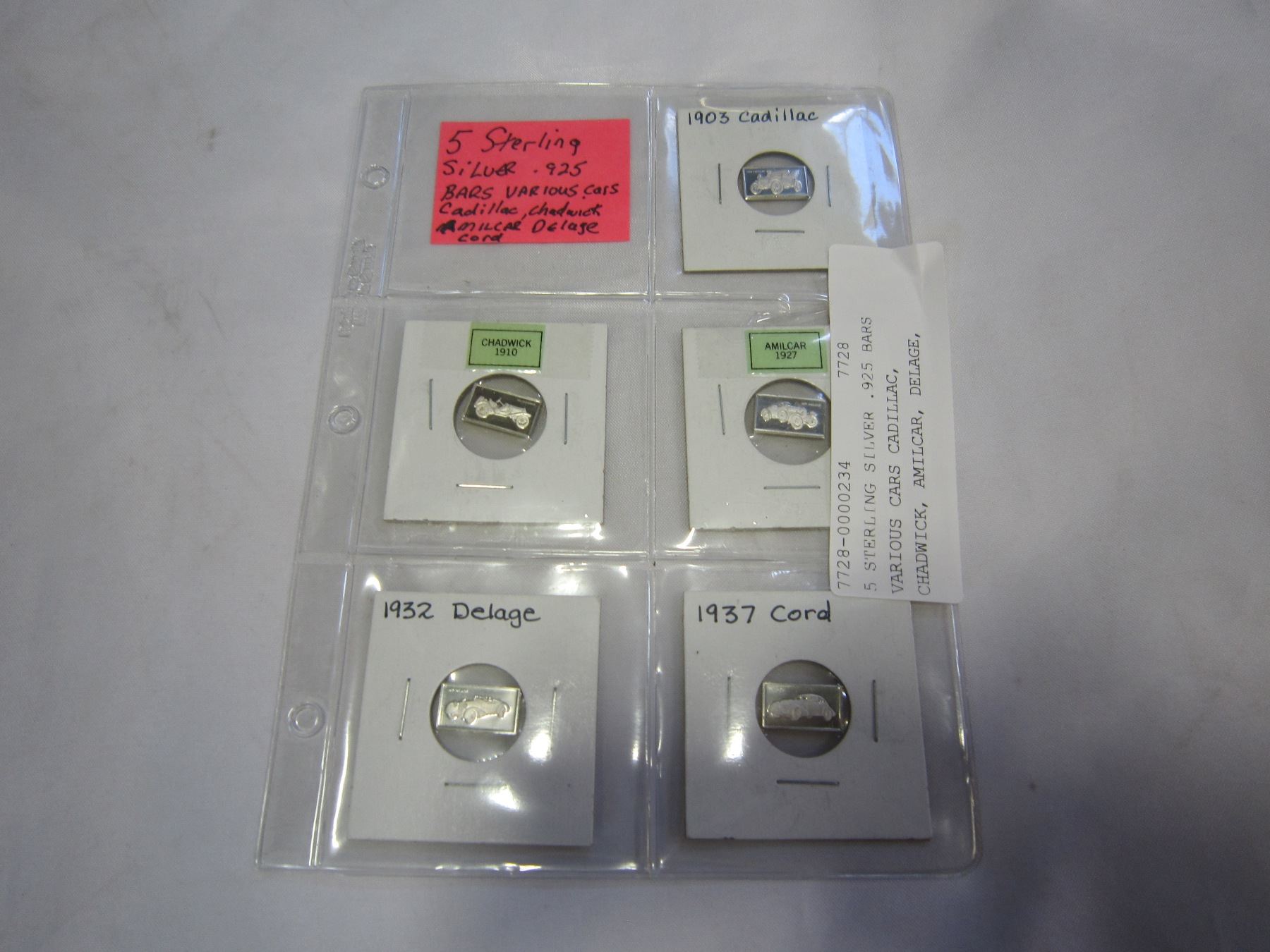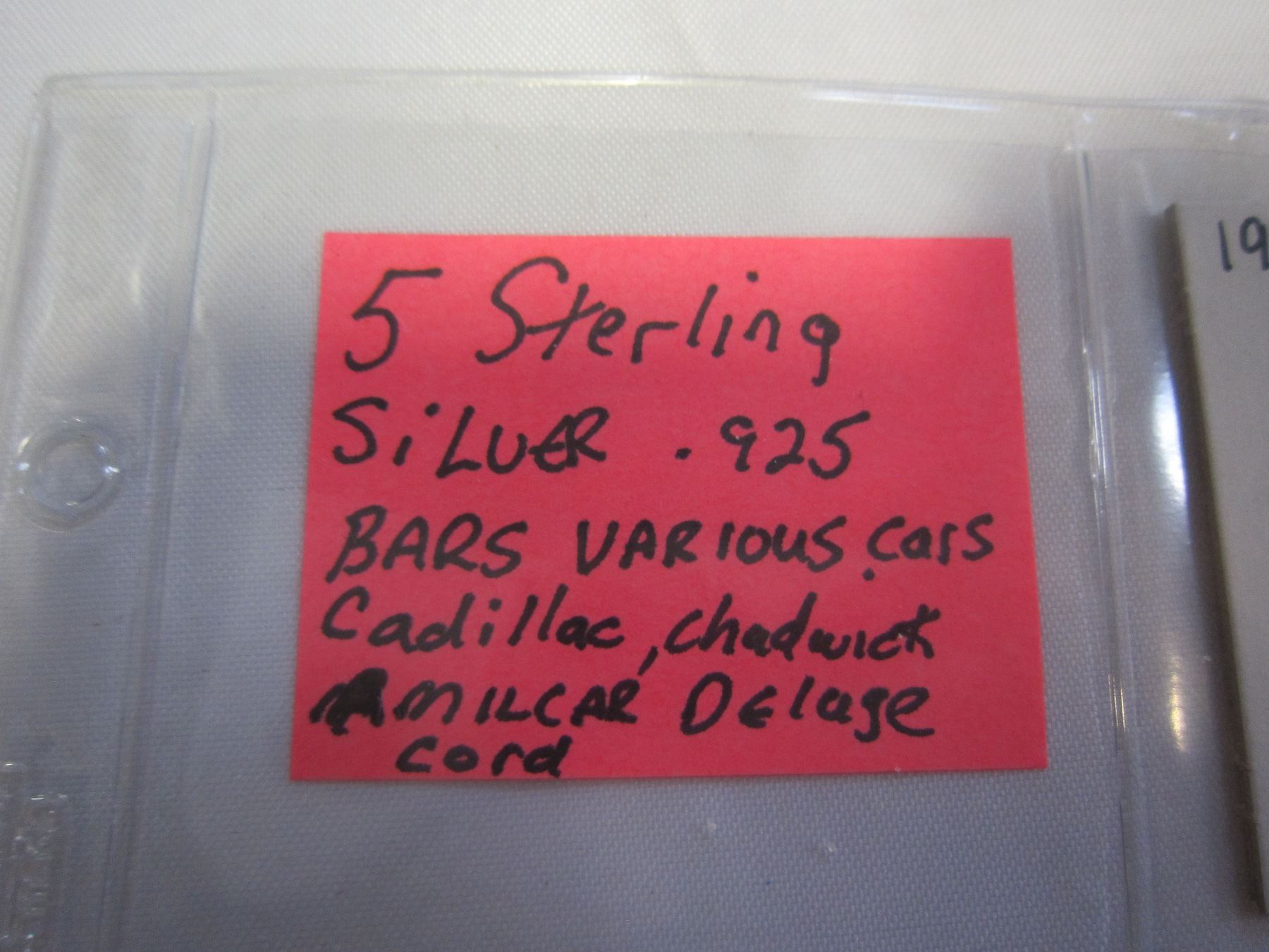 5 STERLING SILVER .925 BARS VARIOUS CARS CADILLAC, CHADWICK, AMILCAR, DELAGE, CORD