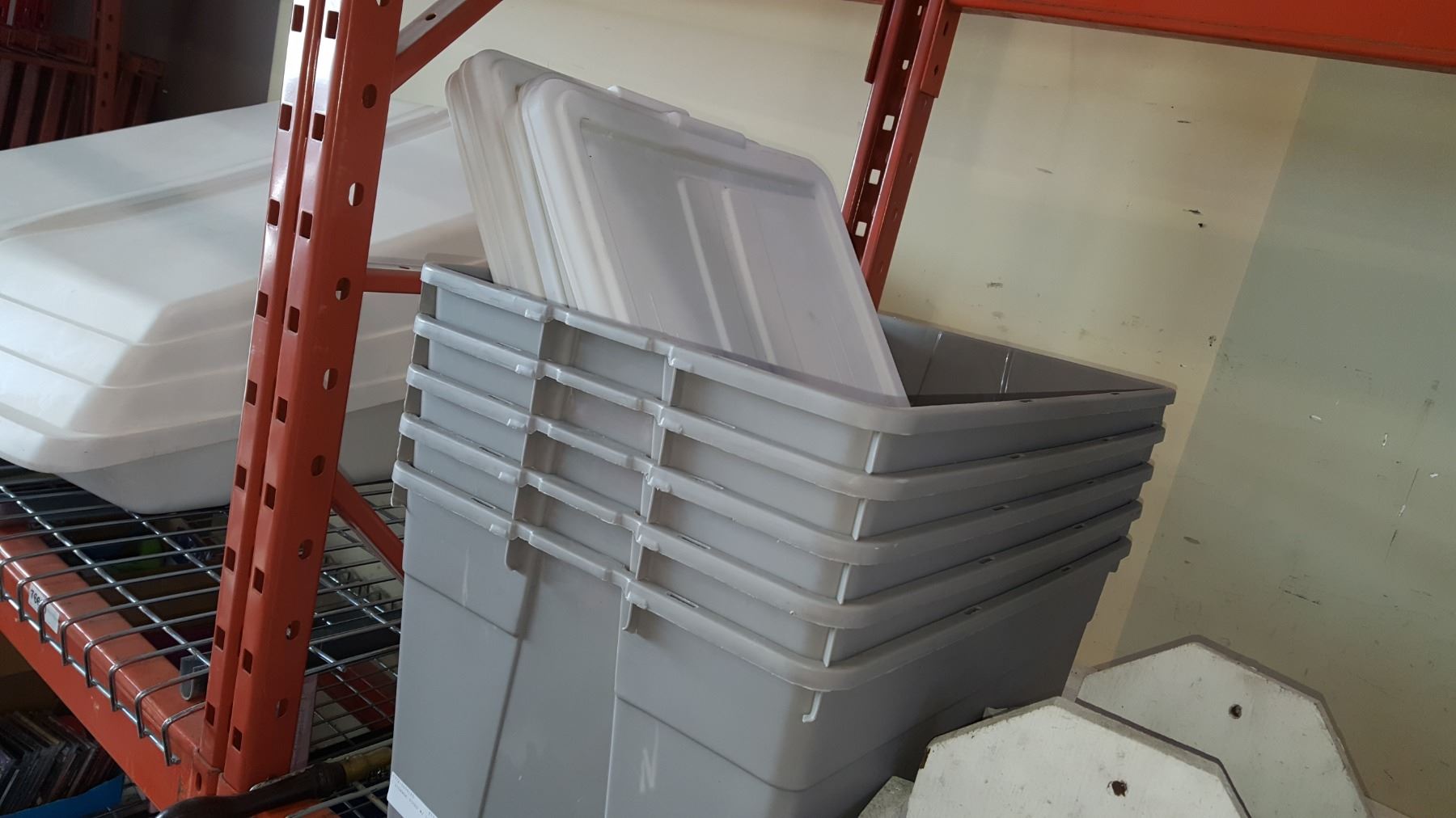 5 STORAGE TOTES W/ LIDS