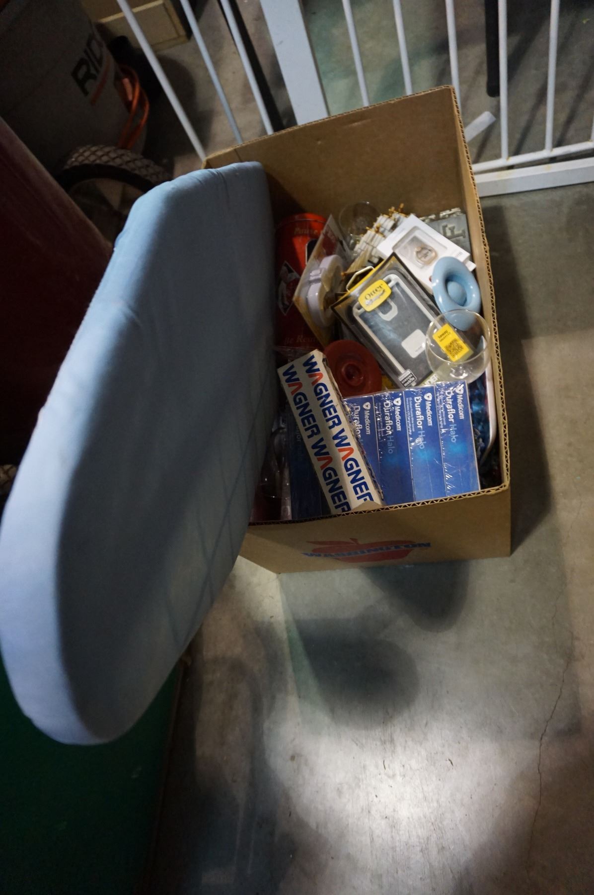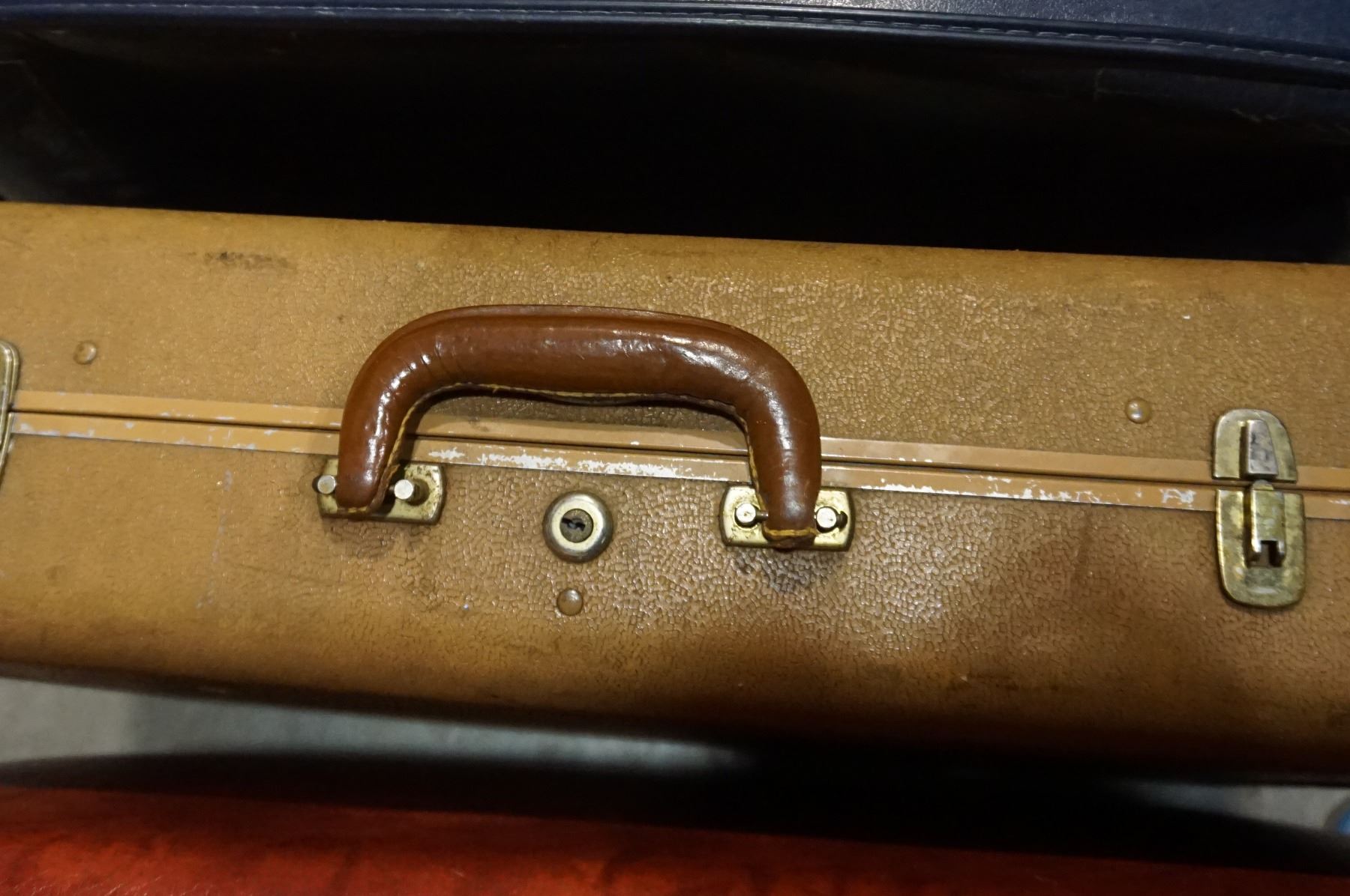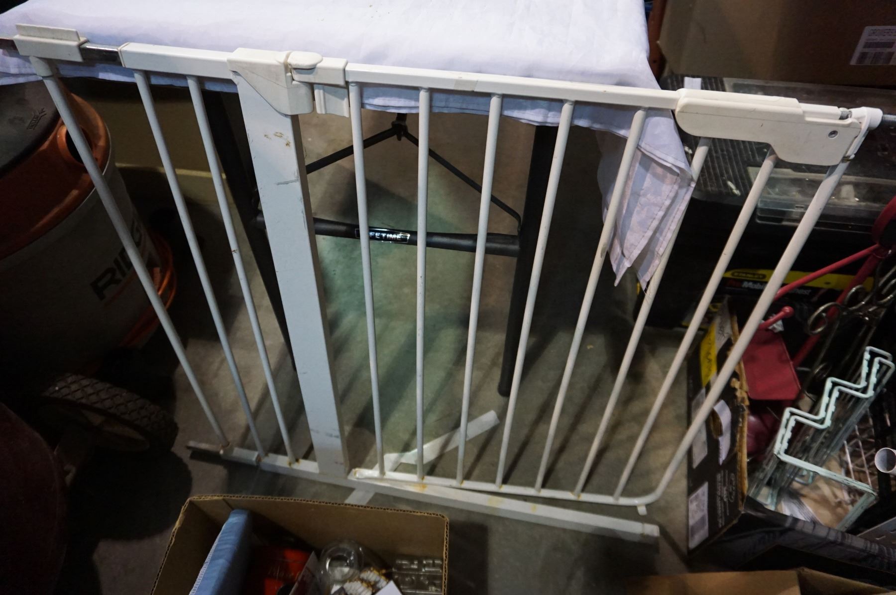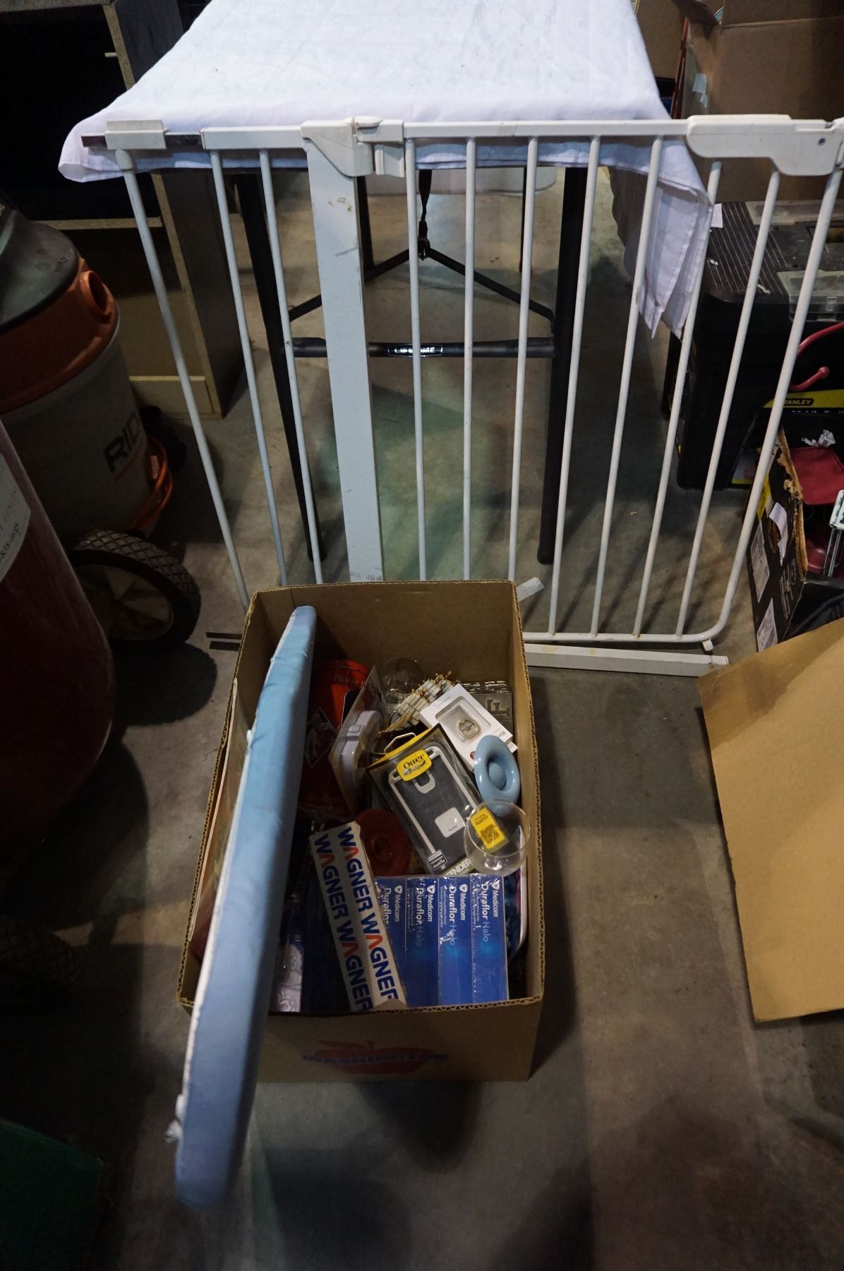 5 VINTAGE SUITCASES W/ BOX OF ESTATE GOODS AND BABY GATE