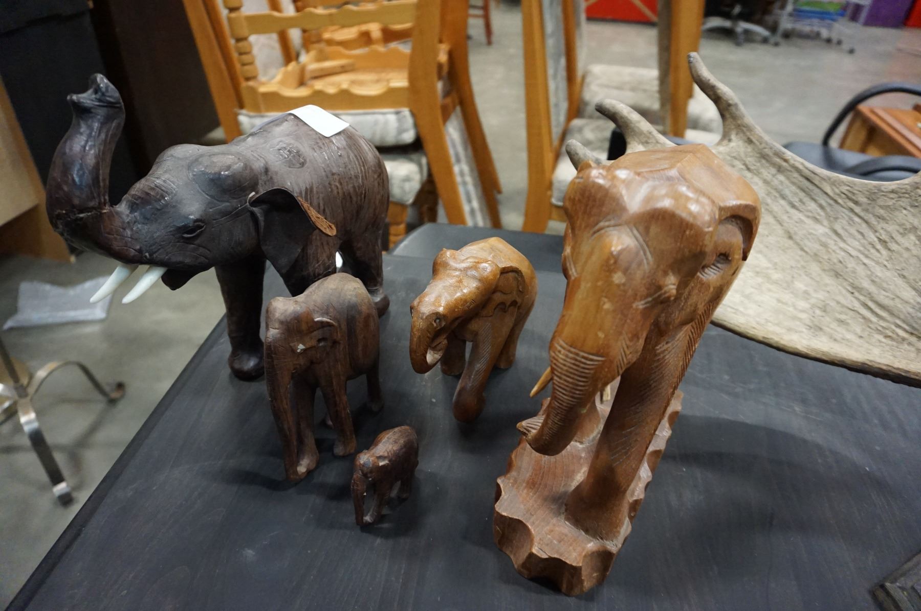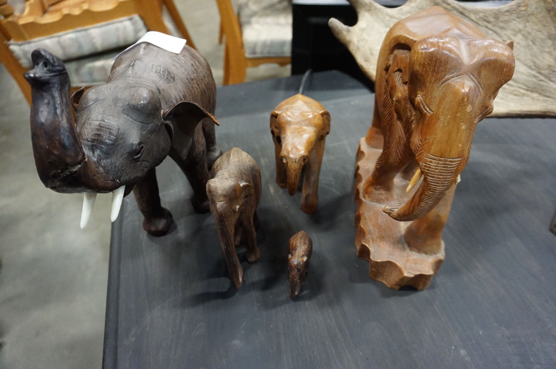 5 WOOD CARVED ELEPHANTS