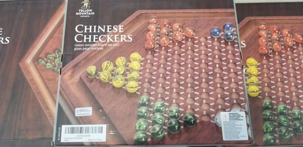 5 YELLOW MOUNTAIN CHINESE CHECKERS BOARD SETS WITH GLASS PETAL MARBLES