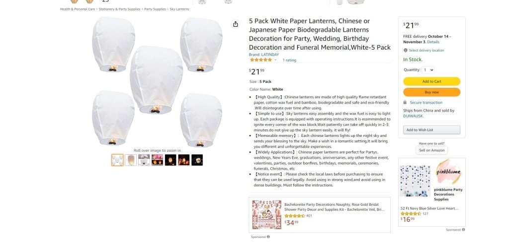 50 NEW PAPER EASTERN FLOATING LANTERNS RETAIL $210