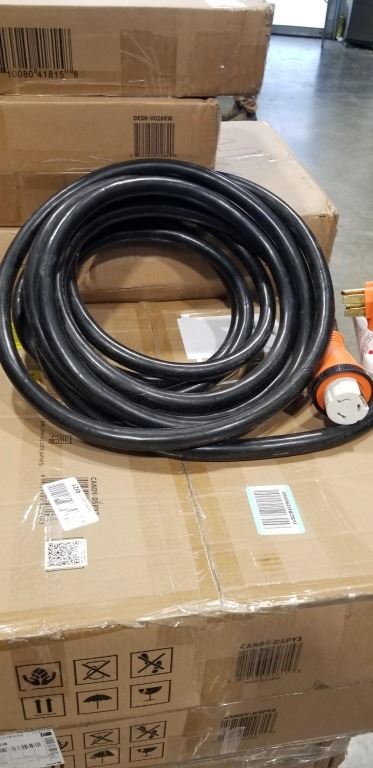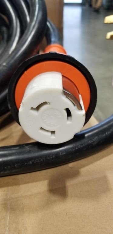 50FT AS NEW 50 AMP RV EXTENSION CABLE, TWIST LOCK AND HANDLE