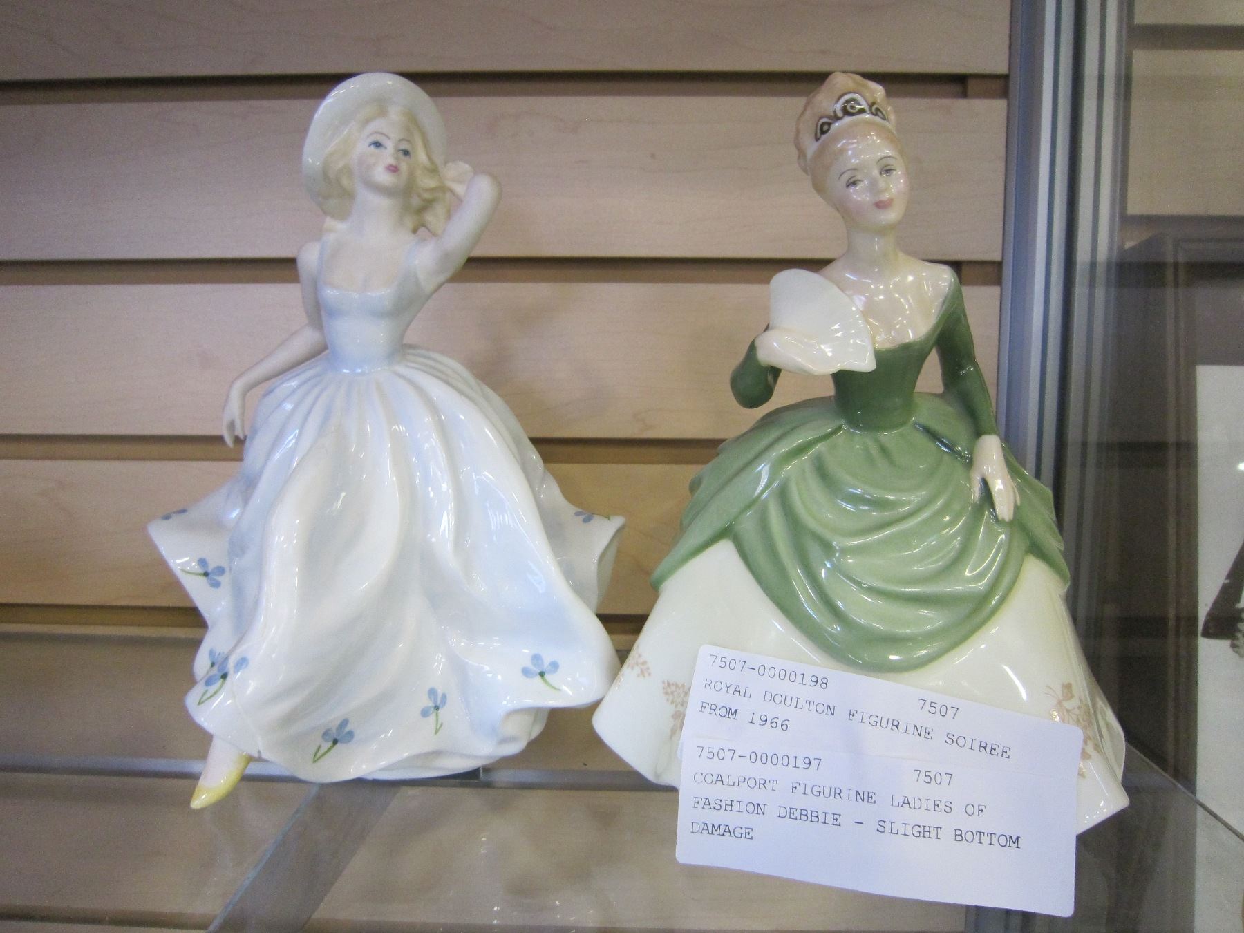 COALPORT FIGURINE LADIES OF FASHION DEBBIE - SLIGHT BOTTOM DAMAGE AND ROYAL DOULTON FIGURINE SOIREE FROM 1966