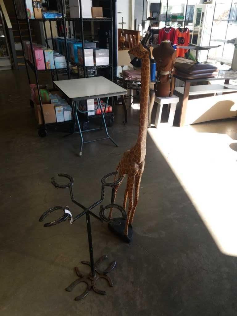 5FT TALL GIRAFFE AND 4 ARM HORSESHOE RACK