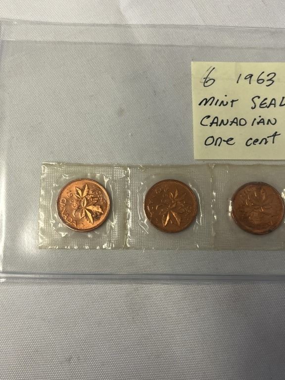6 - 1963 MINT SEALED CANADIAN ONE CENT COINS