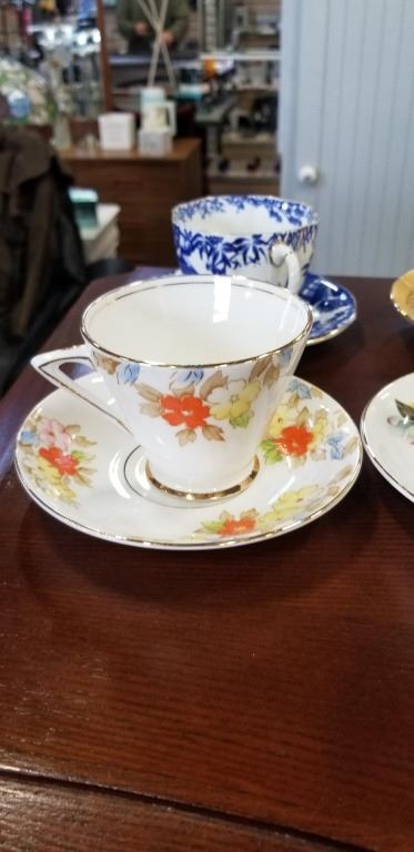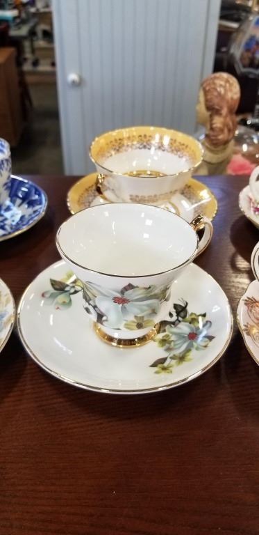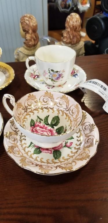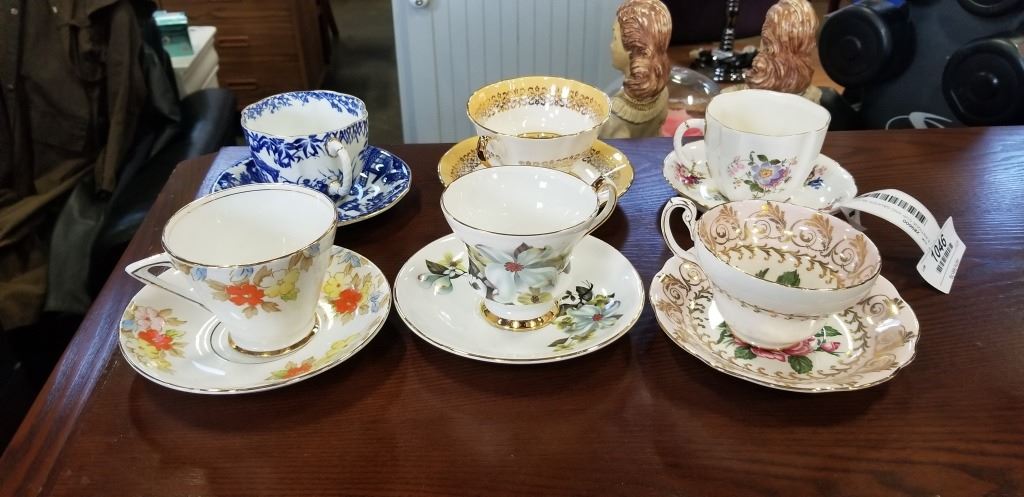 6 ANTIQUE CUP AND SAUCER SETS