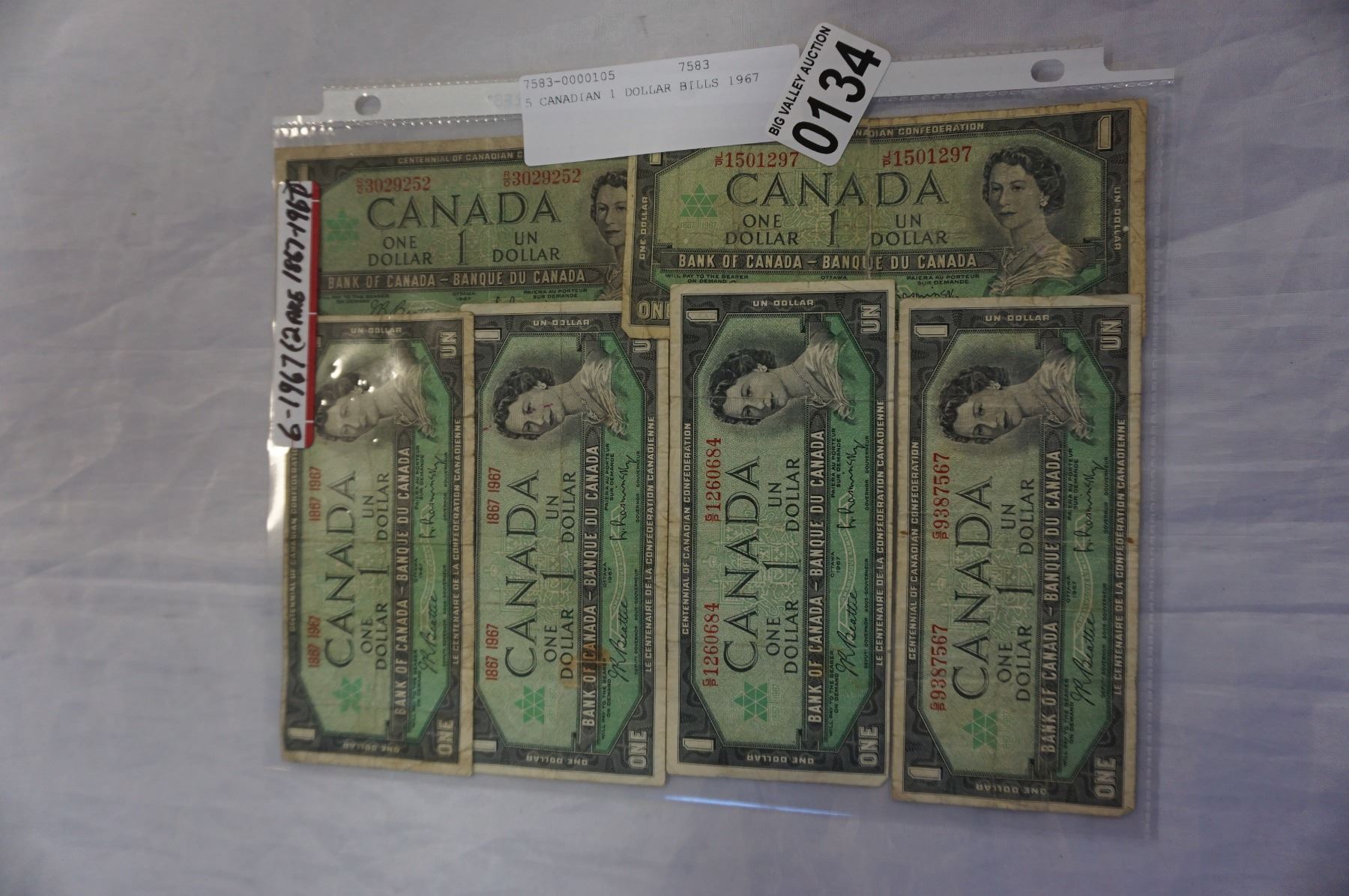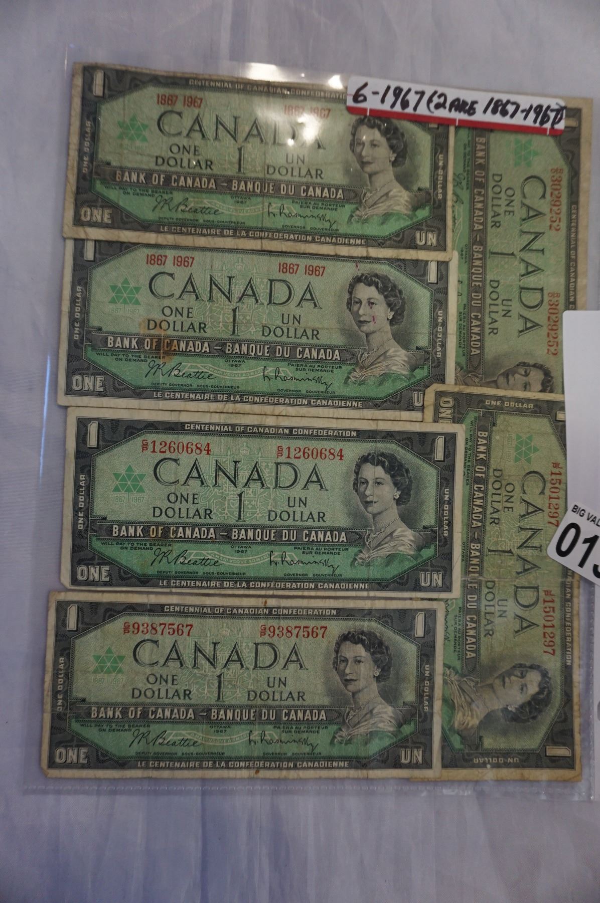 6 CANADIAN 1 DOLLAR BILLS 1967