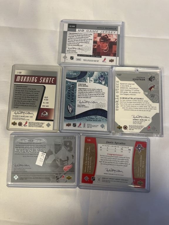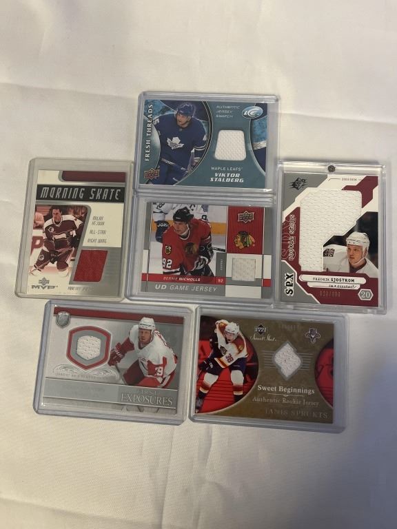 6 COLLECTIBLE JERSEY PIECE HOCKEY CARDS