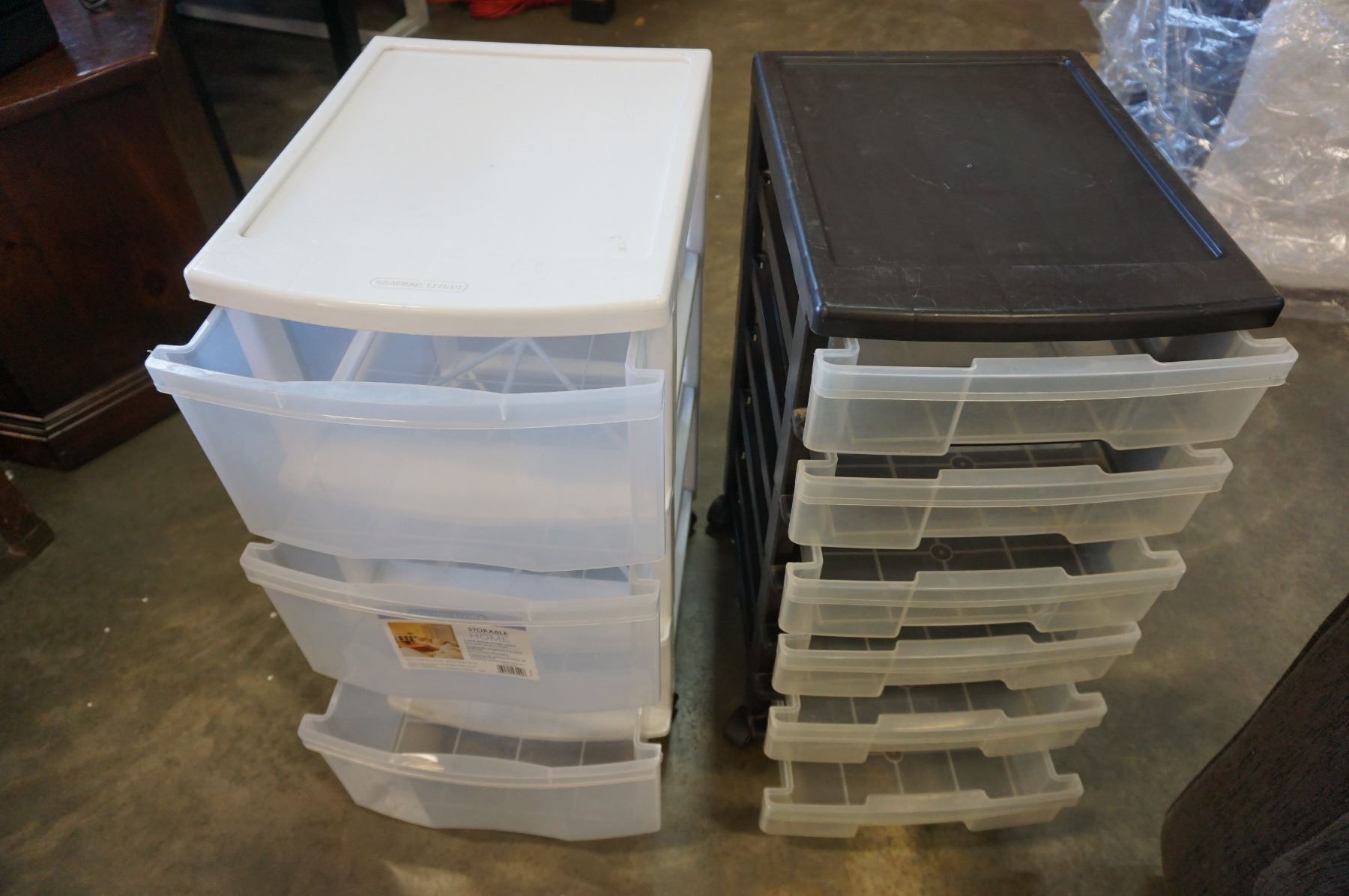 6 DRAWER BLACK ORGANIZER AND 3 DRAWER WHITE ORGANIZER