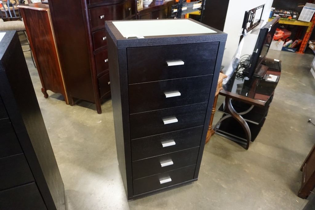 6 DRAWER ESPRESSO GLASSTOP CHEST OF DRAWERS