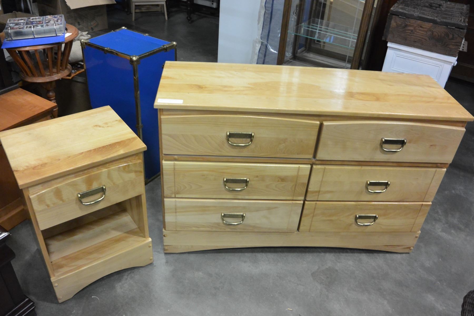 6 DRAWER MAPLE DRESSER AND 1 DRAWER NIGHTSTAND