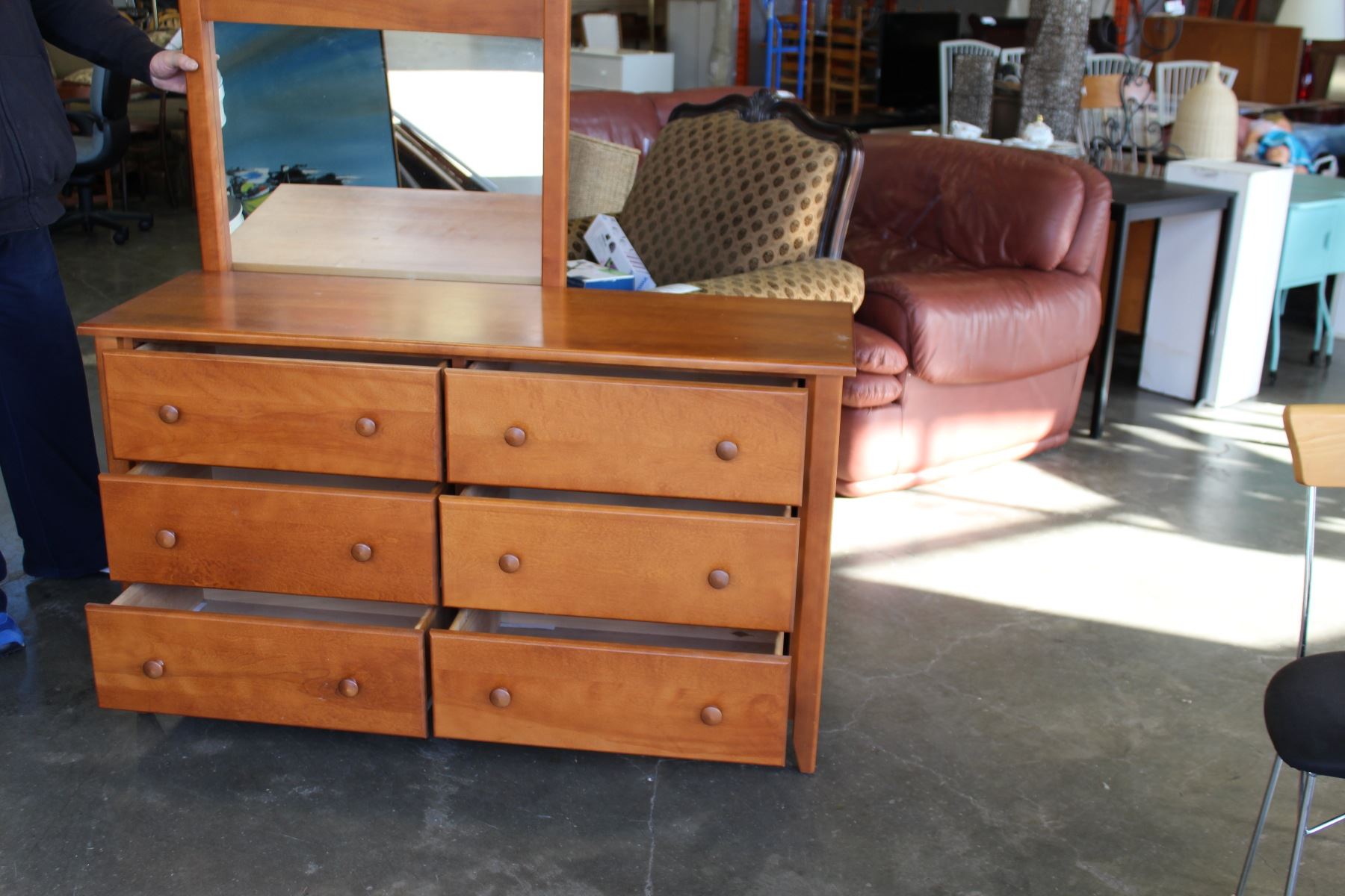 6 DRAWER MAPLE DRESSER WITH MIRROR