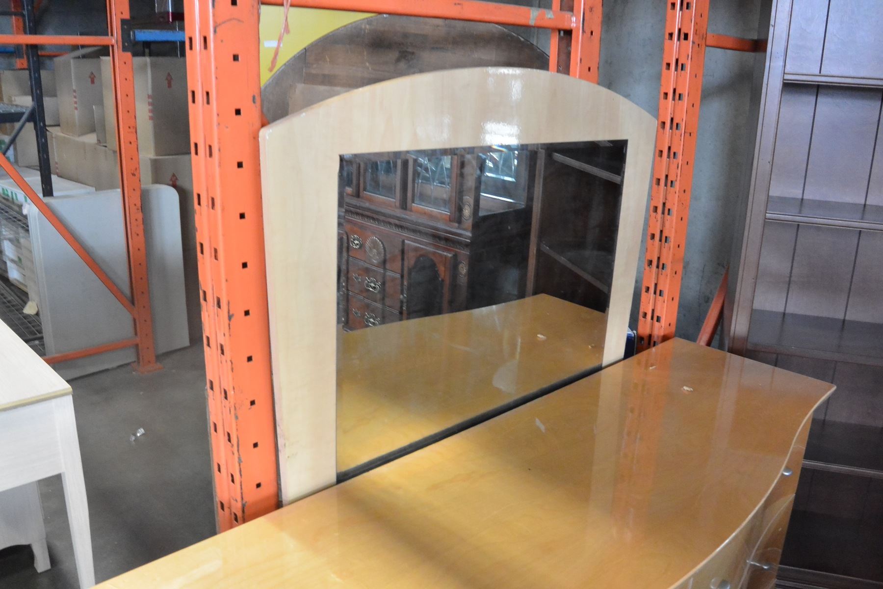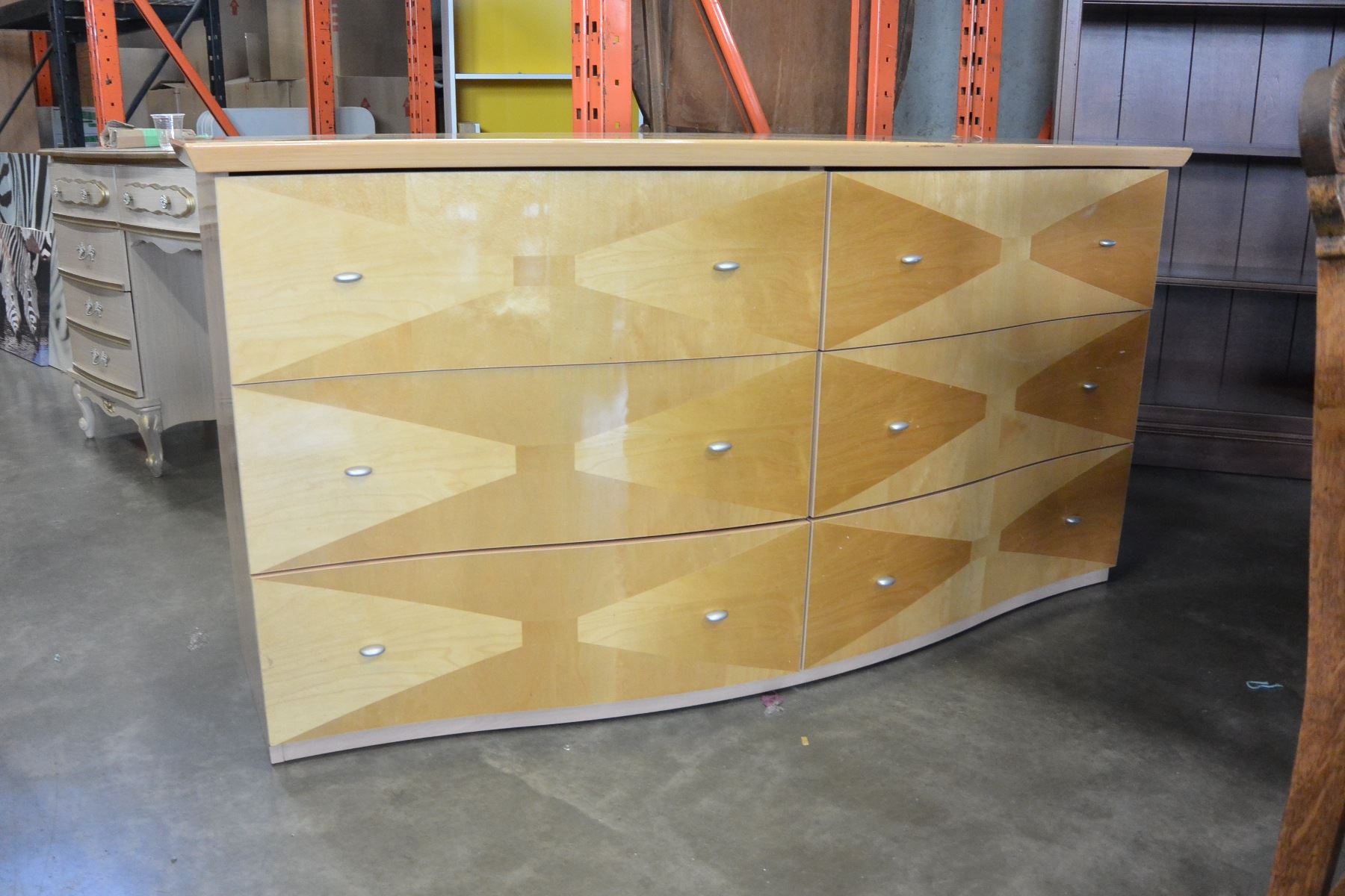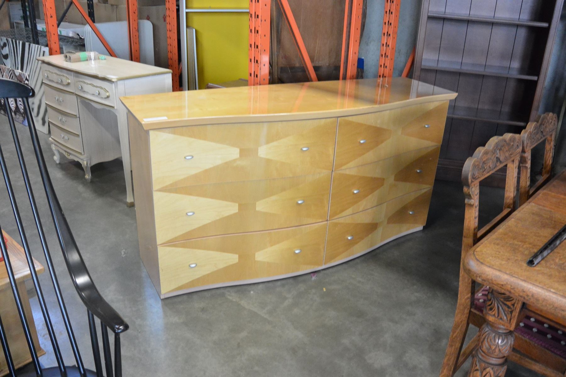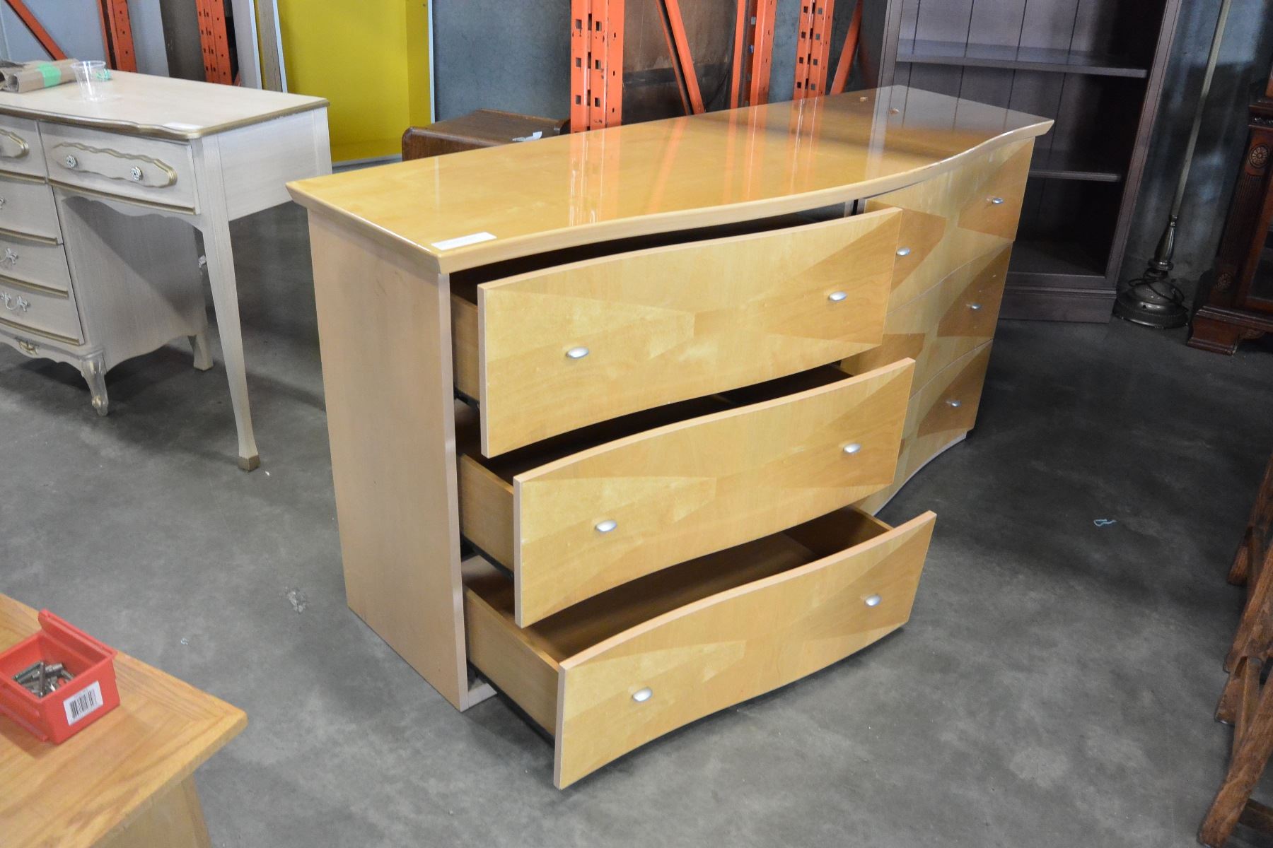 6 DRAWER MODERN SERPENTIME MAPLE DRESSER W/ MIRROR