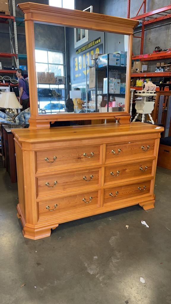 6 DRAWER SOLID PINE DRESSER W/ MIRROR