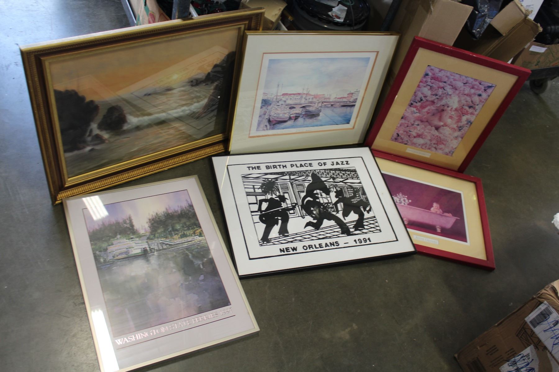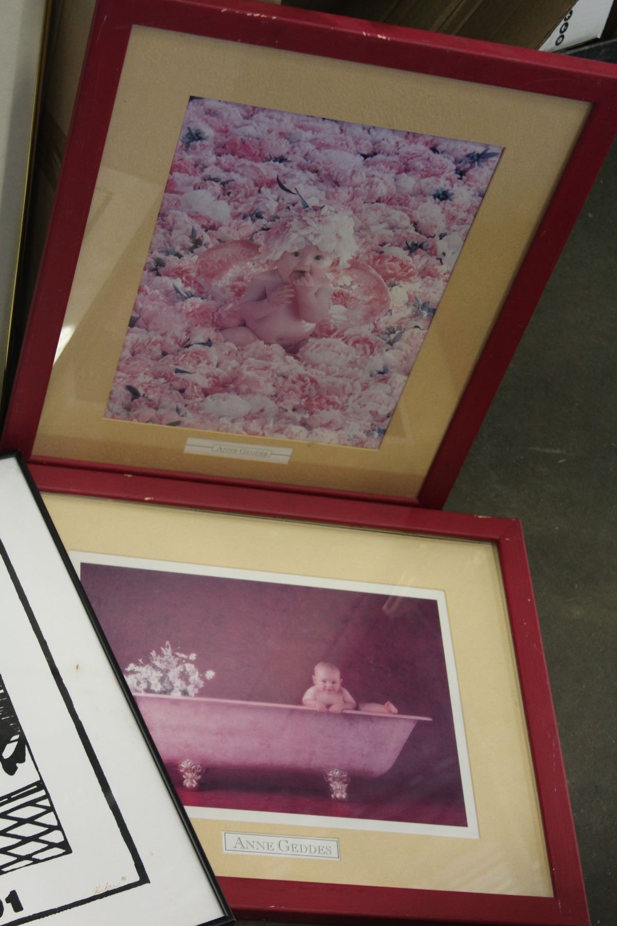 6 FRAMED PRINTS ANNE GEDDES AND OTHERS