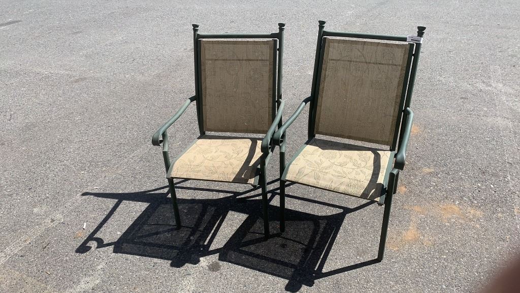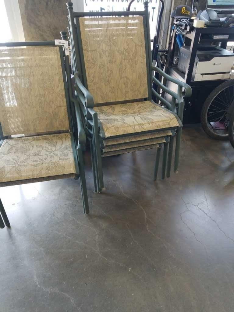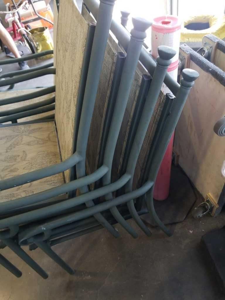 6 GREEN METAL PATIO CHAIRS
