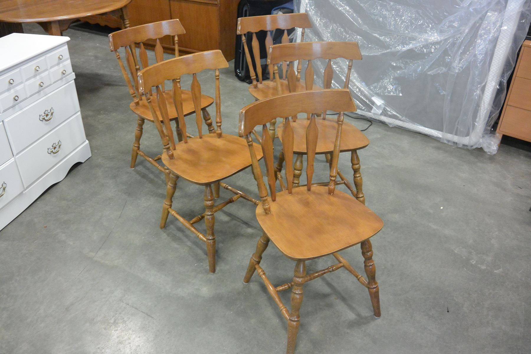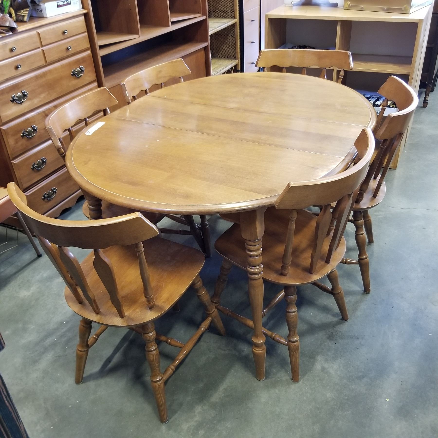 6 MAPLE SIDE CHAIRS W/ TABLE AND LEAF