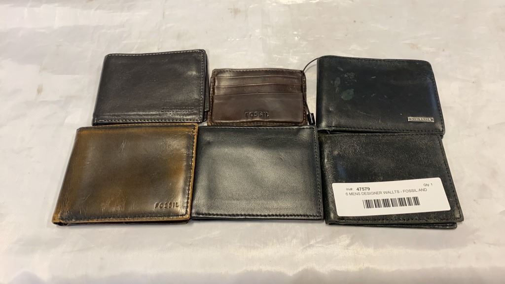 6 MENS DESIGNER WALLTS - FOSSIL AND STEVE MADDEN
