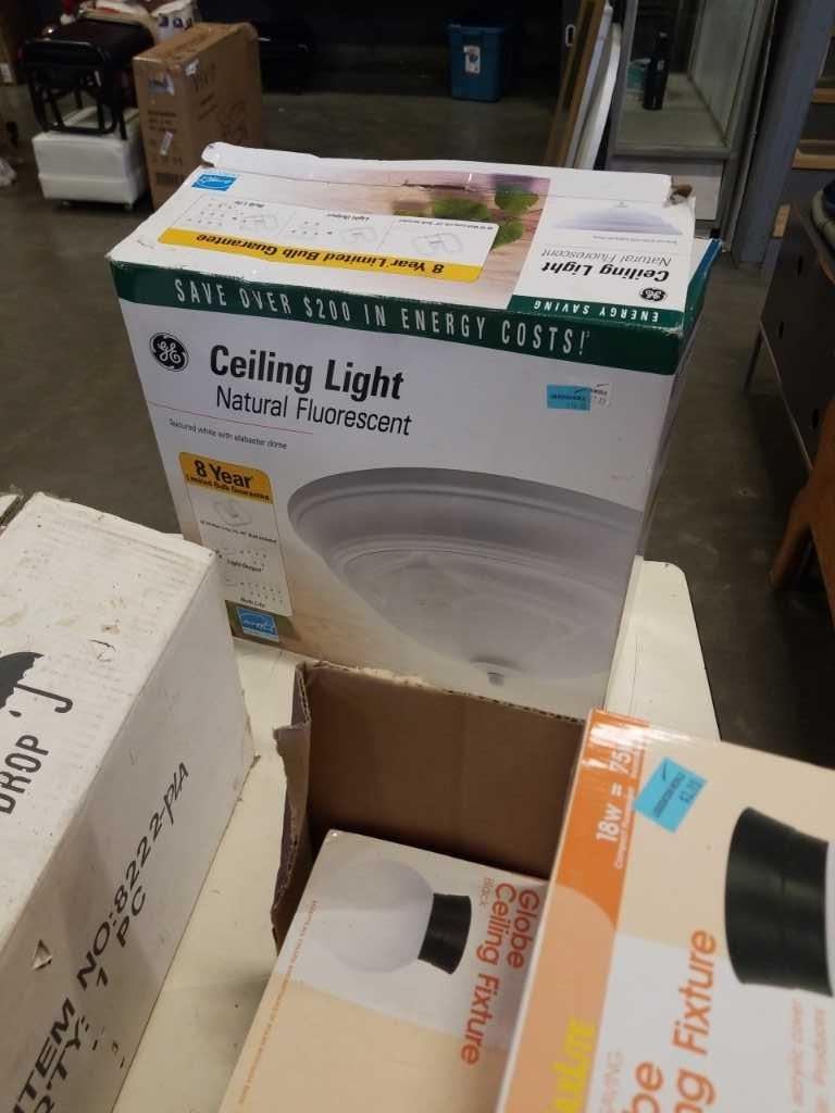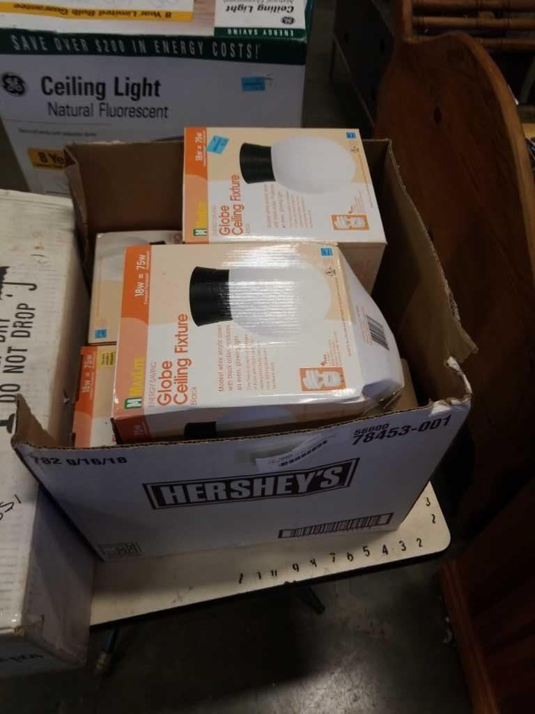 6 NEW GLOBE CEILING LIGHTS AND 2 NEW CEILING LIGHT FIXTURES