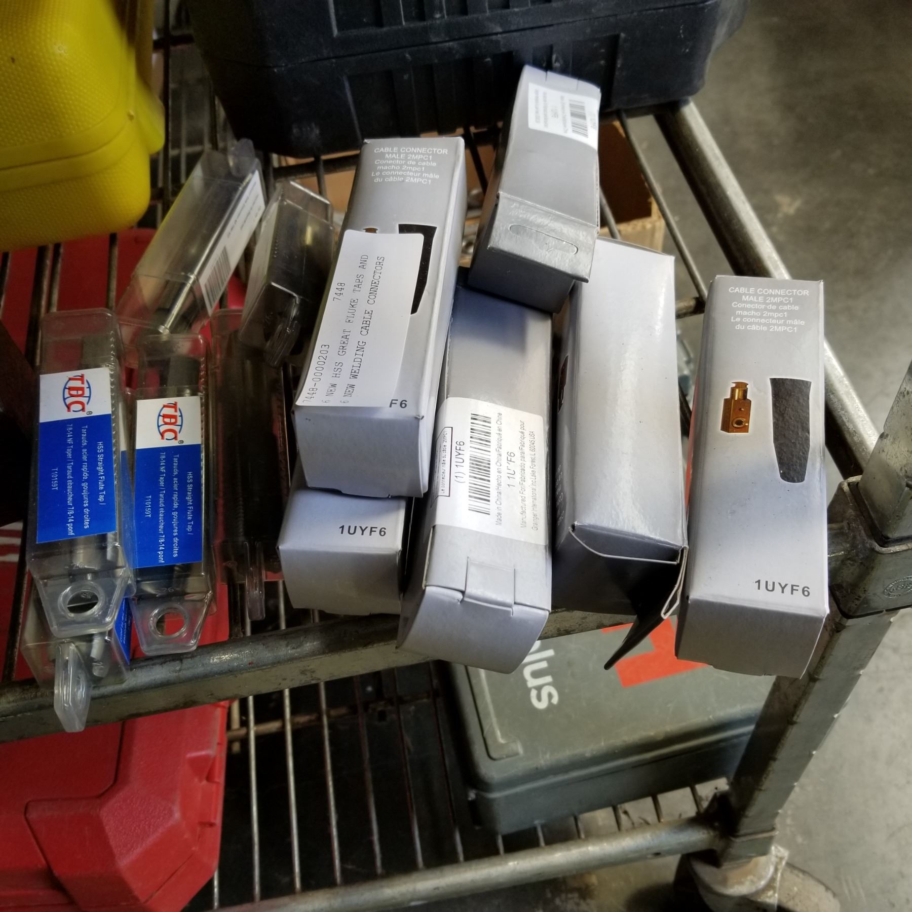 6 NEW HSS GREAT FLUKE TAPS AND 6 NEW WELDING CABLE CONNECTORS