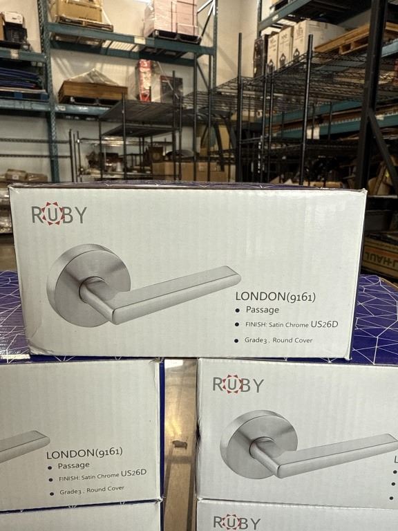 6 NEW LONDON DOOR HANDLES, SATIN CHROME FINISH, GRADE 3, ROUND COVER