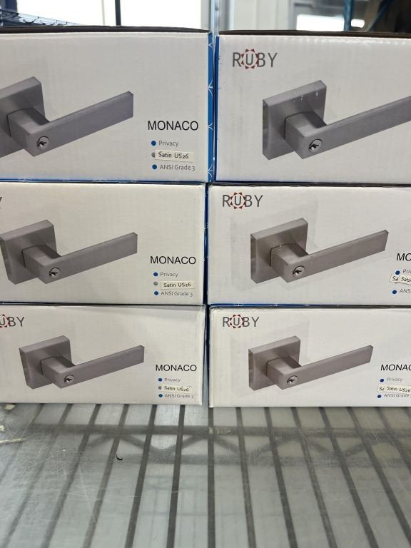 6 NEW MONACO PRIVACY DOOR LOCKS, SATIN FINISH, GRADE 3, SQUARE COVER