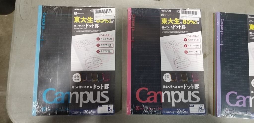 6 NEW PACKS OF CAMPUS NOTEBOOKS, 2 PACKS OF 5 BLAC, SIZE A5, AND 4 PACKS OF RULED SIZE B5, MULTI COLOR