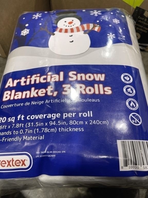 6 NEW PREXTEX ARTIFICIAL SNOW BLANKET, 3 ROLLS PER PACK, EACH ROLL COVERS 20SQFT, 60SQFT PER OPACK,