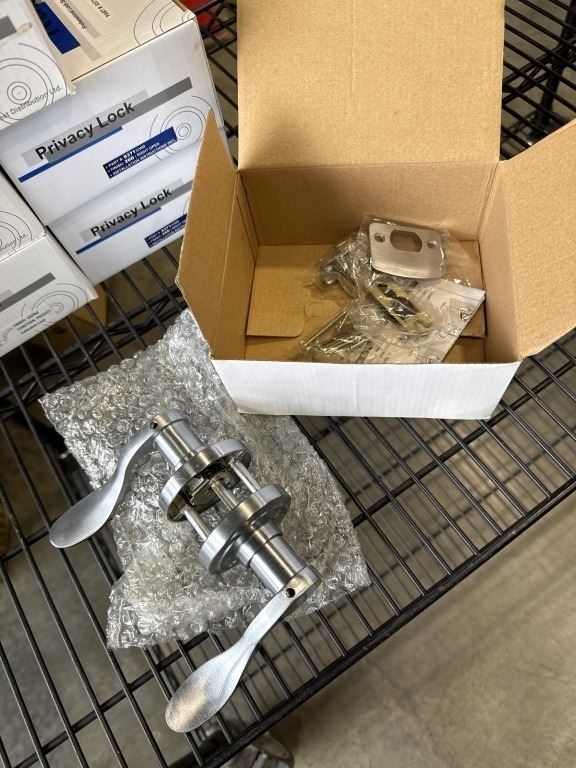 6 NEW PRIVACY SATIN FINISH DOOR HANDLES, 3 LEFT, 3 RIGHT HANDED