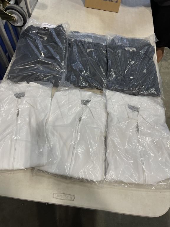 6 NEW WHITE AND BLACK LONG SLEEVE SHIRTS - SIZE LARGE