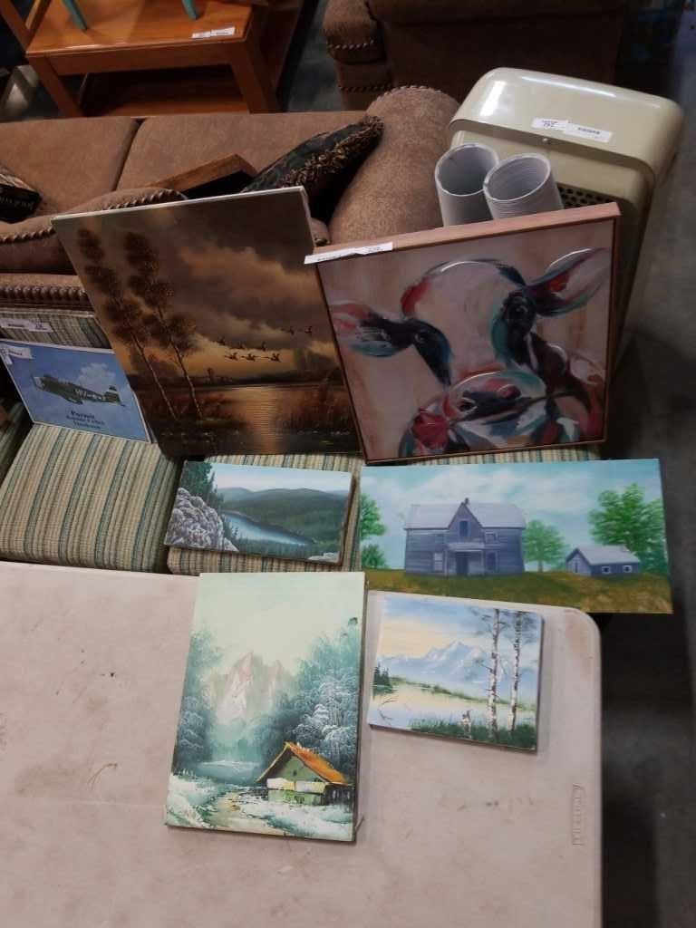 6 PAINTINGS ON CANVAS - 1 IN FRAME